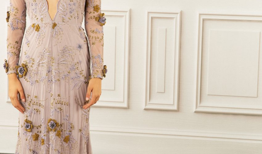 Calling the line and its presentation “beautiful” is an understatement. The surface of each garment is glistening with intricate floral embroidery. Maria learned the exquisite Tambour embroidery technique during her time at the Academy of Art. She fell in love the complex process so much, it became indispensable in her ready-to-wear, and bridal designs.